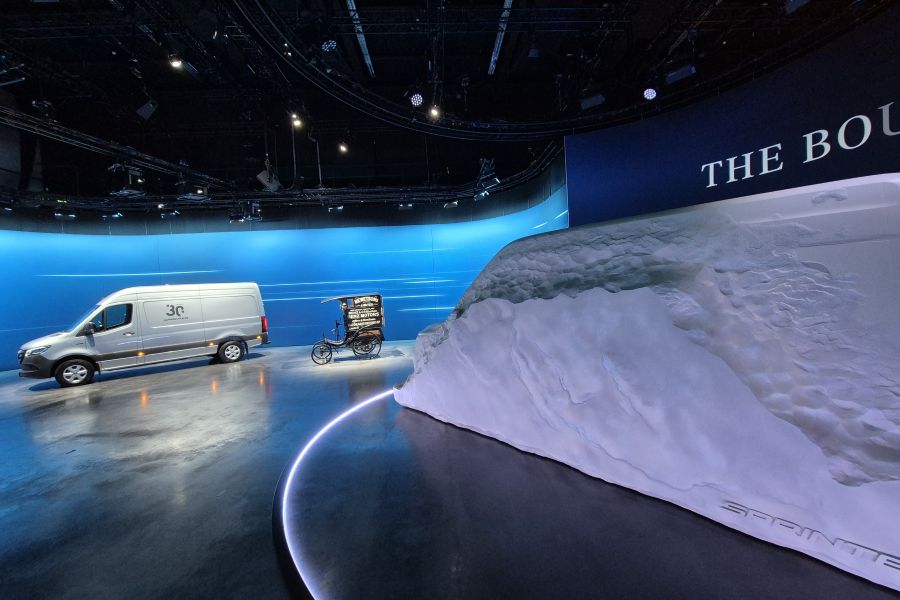 İlk hafif ticari araç üretimine 1896 yılında başlayarak otomotiv dünyasındaki pek çok ilkle birlikte bu van modellerinin de mucidi olan Mercedes-Benz, dünyanın en eski trafiğe çıkabilen hafif ticari aracıyla birlikte elektrikli bir eSprinter’ı ve markanın gelecekteki ticari araçlarının ipuçlarını veren taş görünümlü heykel “THE BOuLDER”ın aynı salonda sergiledi.