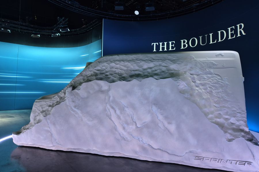 Aslında özel organizasyonda gösterilen Boulder (Kaya) heykelinde sınırlı bir şekilde tasarımı gösterilen gelecek nesil Sprinter’ın geliştirilmesinde müşteri ihtiyaçlarının müşterilerle birlikte şekillendirilmesi anlayışını ifade etmek istenmiş.