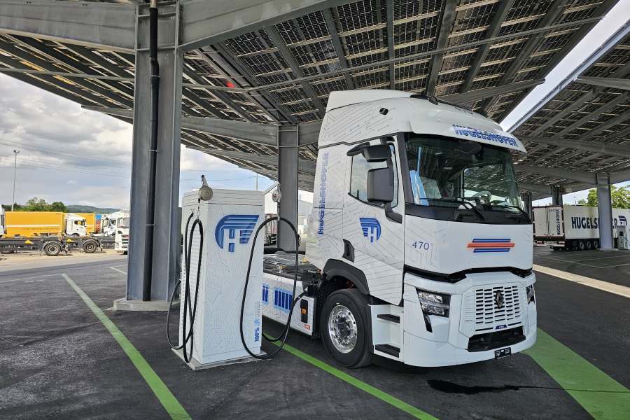 Hugelshofer’in Renault Trucks E-Tech T araçlarının performansı, büyük ölçüde optimize edilmiş bir şarj altyapısına dayanıyor. Taşımacının Frauenfeld tesisinde, maksimum 480 kW güce sahip 30 hızlı şarj istasyonu bulunuyor ve bu altyapı sayesinde günde 100 kamyona kadar şarj gerçekleştirilebiliyor.