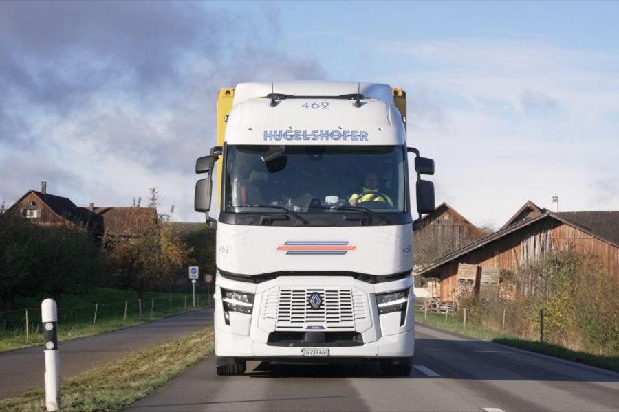 Elektrikli kamyonların kullanım süresini en üst düzeye çıkarmak ve toplam sahip olma maliyetini (TCO) optimize etmek amacıyla Hugelshofer Lojistik, Renault Trucks E-Tech T araçlarını çift şoförlü olarak işletiyor. Sürücüler, zorunlu dinlenme molaları sırasında ara şarj işlemlerini gerçekleştirirken tam şarj işlemi gece boyunca depoda gerçekleştiriliyor. Bu yaklaşım sayesinde, nominal menzili 300 km olan her bir elektrikli kamyon, klasik bir operasyon gününde 600 km’nin üzerinde yol kat edebiliyor.