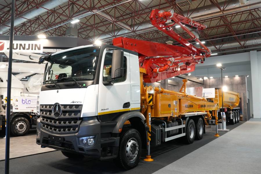 Koluman’ın lansmanını yaptığı Junjin markalı 39-5 beton pompası; 39 metreye 5 bomla ulaşarak 158 metreküp/saat beton pompalama kapasitesiyle çalışabiliyor. Yapılan açıklamya göre model, Rexroth hidrolik pompa ve Bosch AV110 ana pompa ile yüksek basınç altında istikrarlı performans sunuyor.