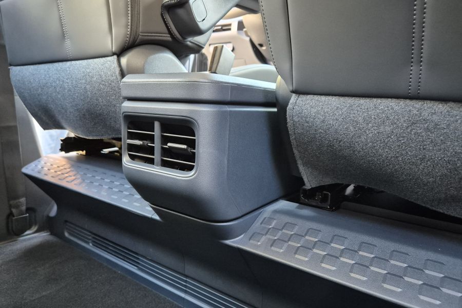 Kia PV5 kabin içinde de kapı içlerinden konsol üstüne orta gövdedeki çekmeceli gözleri, koltuklar arasındaki konsol alanlarıyla her açıdan yeterli saklama alanı sunuyor. Ferah bir ortam sunan kabin içinde kaliteli malzemeler kullanılmış.