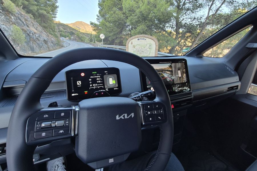 Aracın platformunun Kia’nın başarılı elektrikli modellerinden gelmesi ilk defa pazara giren bir model yerine çok daha oturmuş bir araç kullanma hissi veriyor. Kia'nın elektrikli binek araçlarındaki dijital teknolojiler ve yine bineklerde yeni kullanılmaya başlanan yeni nesil fren rejenerasyon sistemi bunlardan bazıları. Örneğin sinyal verdiğiniz şeritteki trafiği kamerayla göstergeye yansıtan sistemi güvenlik açısından çok kullanışlı buldum.