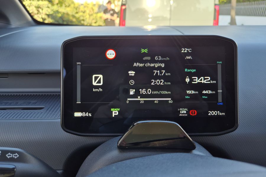 Araç bilgisayarına göre 100 kilometrede ortalama 16 kWh enerji tüketimi vardı. Yüzde 99 dolu olarak başladığım sürüşün sonunda batarya seviyesi yüzde 84’tü ve yol bilgisayarı 342 km daha menzil veriyordu ki bu veri fabrika değerlerinin isabetli olduğuna işaret ediyor.