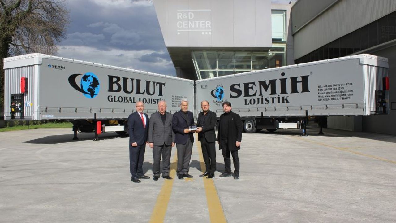 Semih Lojistik yeni araçlarını Tırsan Adapazarı Mega Üretim Kampüsü’nde gerçekleştirilen tören ile teslim aldı. Tırsan Treyler Yönetim Kurulu Başkanı Çetin Nuhoğlu’nun ev sahipliğinde gerçekleştirilen törene; Semih Lojistik ortakları Güngör Bulut, Necmettin Bulut, Hasan Bulut ve Tırsan Treyler Satış İcra Kurulu Üyesi Recep Demirci katılım gösterdi.